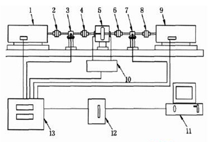 (5)被試液力變矩器 (6)彈性聯(lián)軸器 (7)加載轉(zhuǎn)速轉(zhuǎn)矩傳感器 (8)彈性聯(lián)軸器