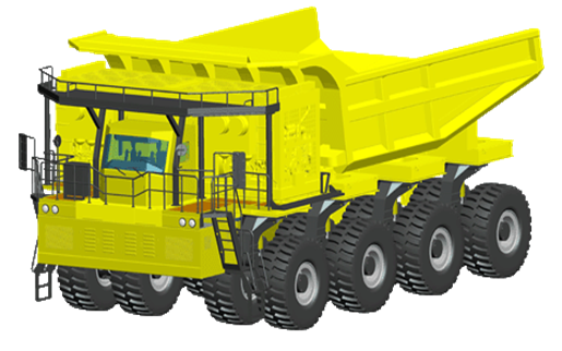 采用合能電驅(qū)動系統(tǒng)的新型節(jié)能多軸重型礦用自卸車,已經(jīng)載重240噸進(jìn)行了2000公里的路面各項試驗,在內(nèi)蒙古露天礦克服當(dāng)?shù)亓阆滤氖鹊膼毫犹鞖鈼l件,每天分三班正式運(yùn)行。該車采用4軸線、8個懸架、16×16全輪驅(qū)動、全輪轉(zhuǎn)向等結(jié)構(gòu)形式,綜合運(yùn)用了雙發(fā)動機(jī)聯(lián)合動力、多車輪獨(dú)立電驅(qū)動技術(shù)、大行程液壓懸架、擺動軸技術(shù)、箱型車架、液壓制動和轉(zhuǎn)向、遠(yuǎn)程監(jiān)控自動診斷等先進(jìn)技術(shù),提高了車輛道路適應(yīng)性,降低了道路維護(hù)頻次和成本,延長了輪胎壽命,同時具有轉(zhuǎn)彎半徑小、機(jī)動性能好、供貨周期短、采購及維護(hù)成本低等優(yōu)點,別適應(yīng)于大中型露天礦山開采運(yùn)輸和大型工程施工。